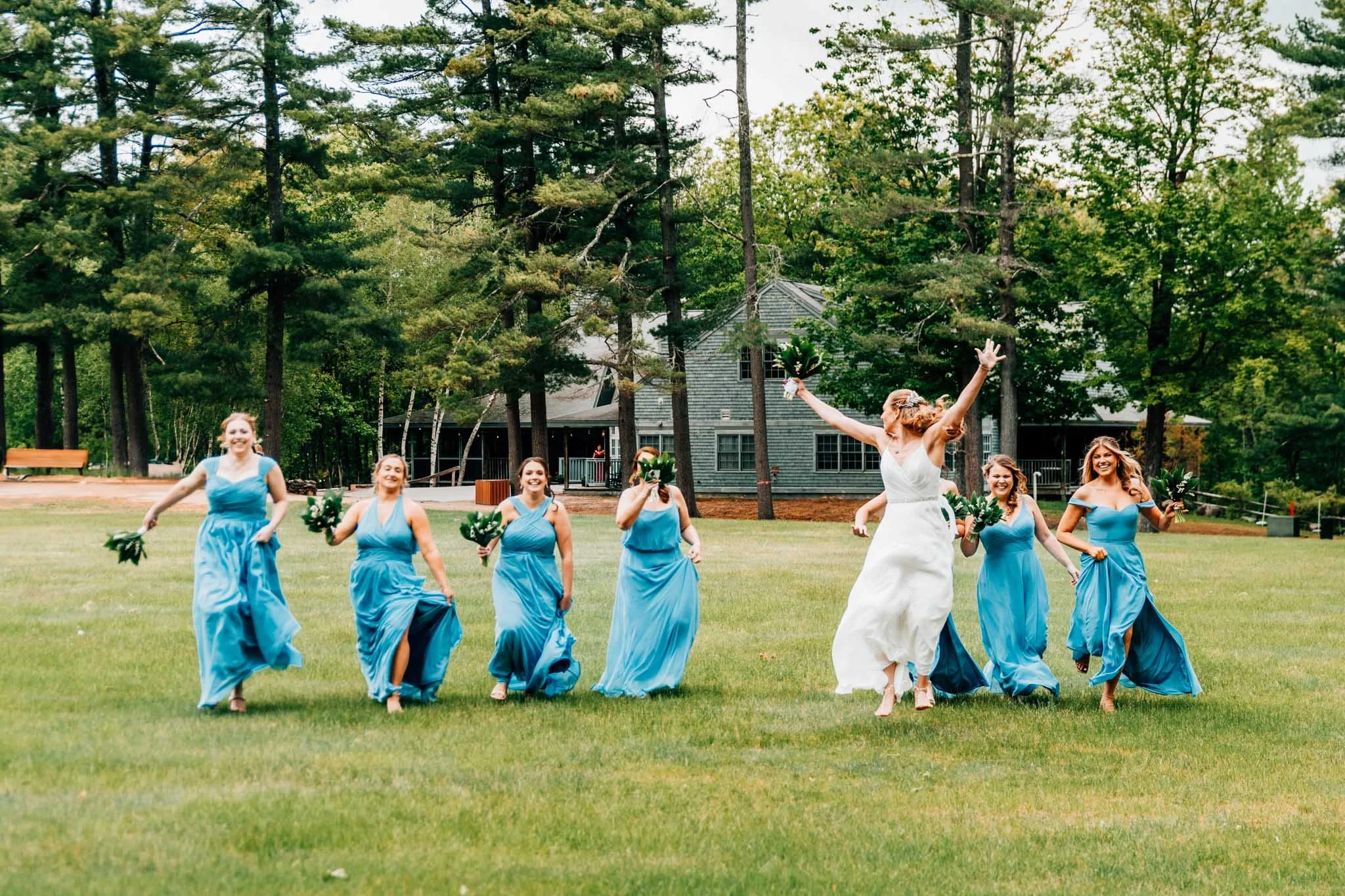 Cortney & Ryan planned to have all 120 of their guests hike an easy 1/2 mile trail to their wedding ceremony in May in New Hampshire. It was a cooler day in the 50s which was just right for the nature walk at Geneva Point Center.